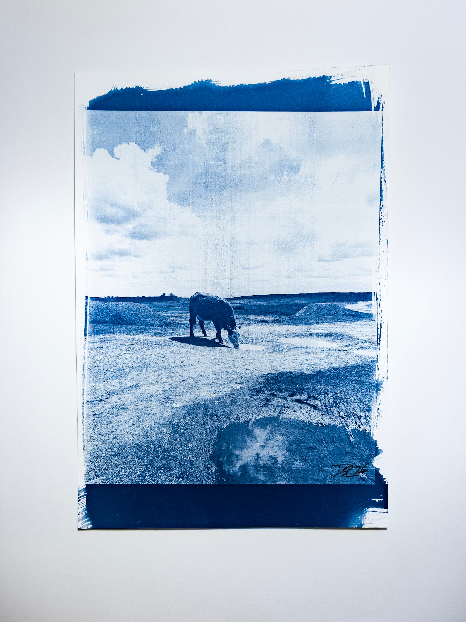 An original hand-printed cyanotype featuring distinctive deep-blue tones created through UV exposure. Signed and ready to frame.