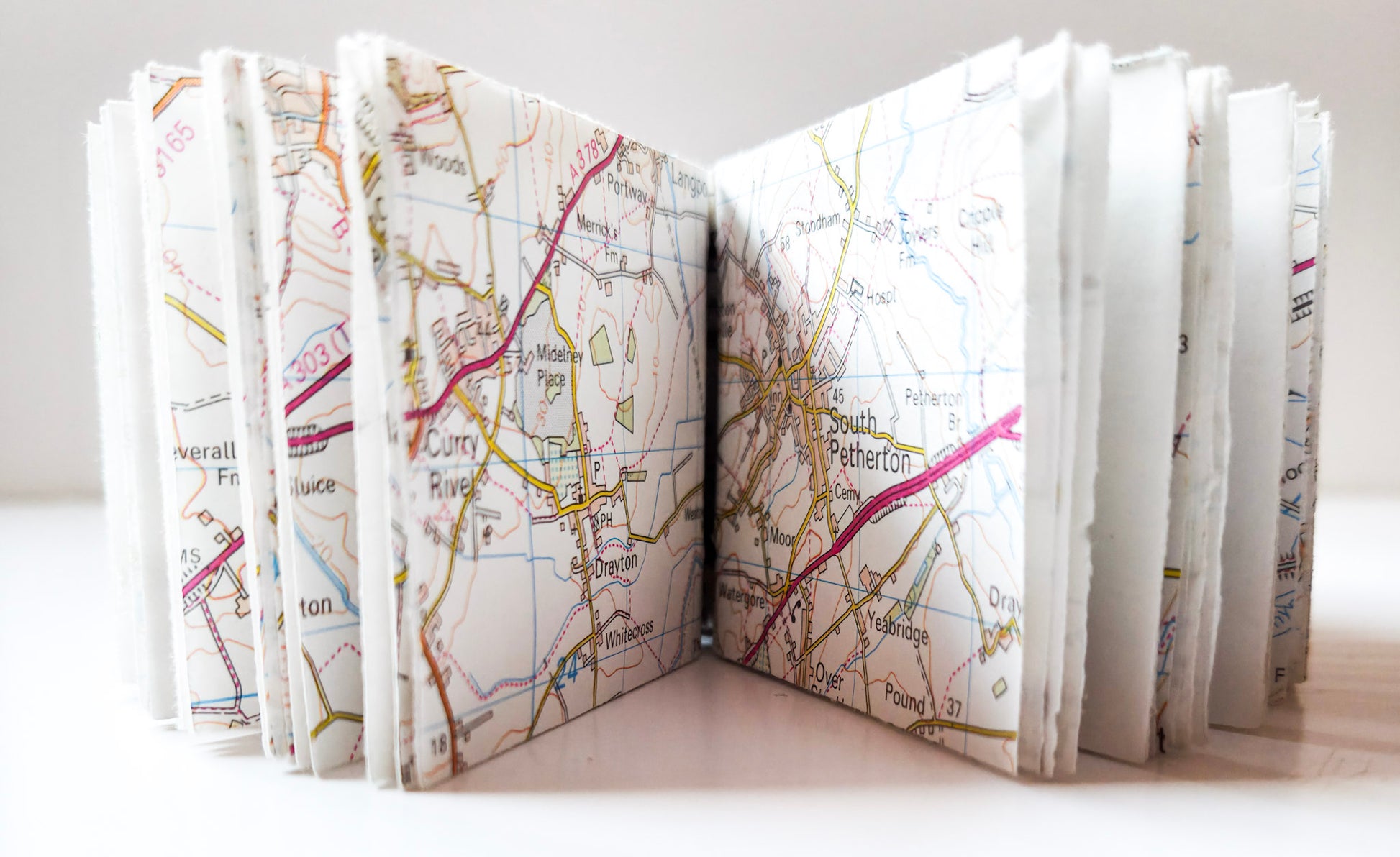 Handmade book from an OS map. Taunton to Lyme Regis.